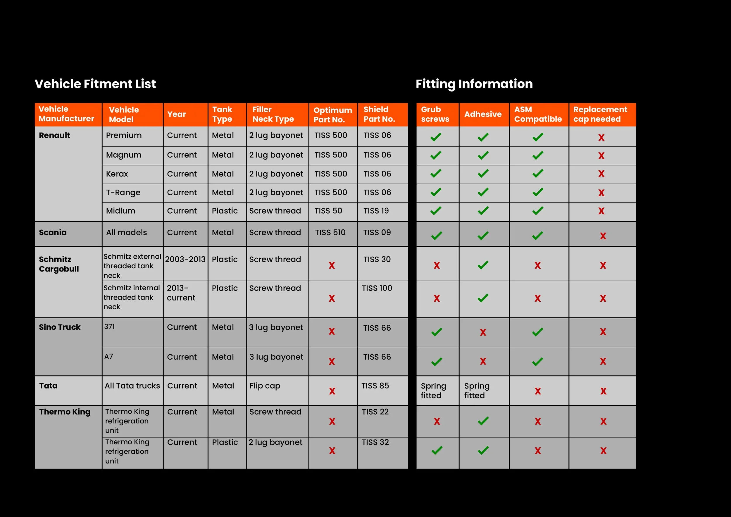 Vehicle Fitment List